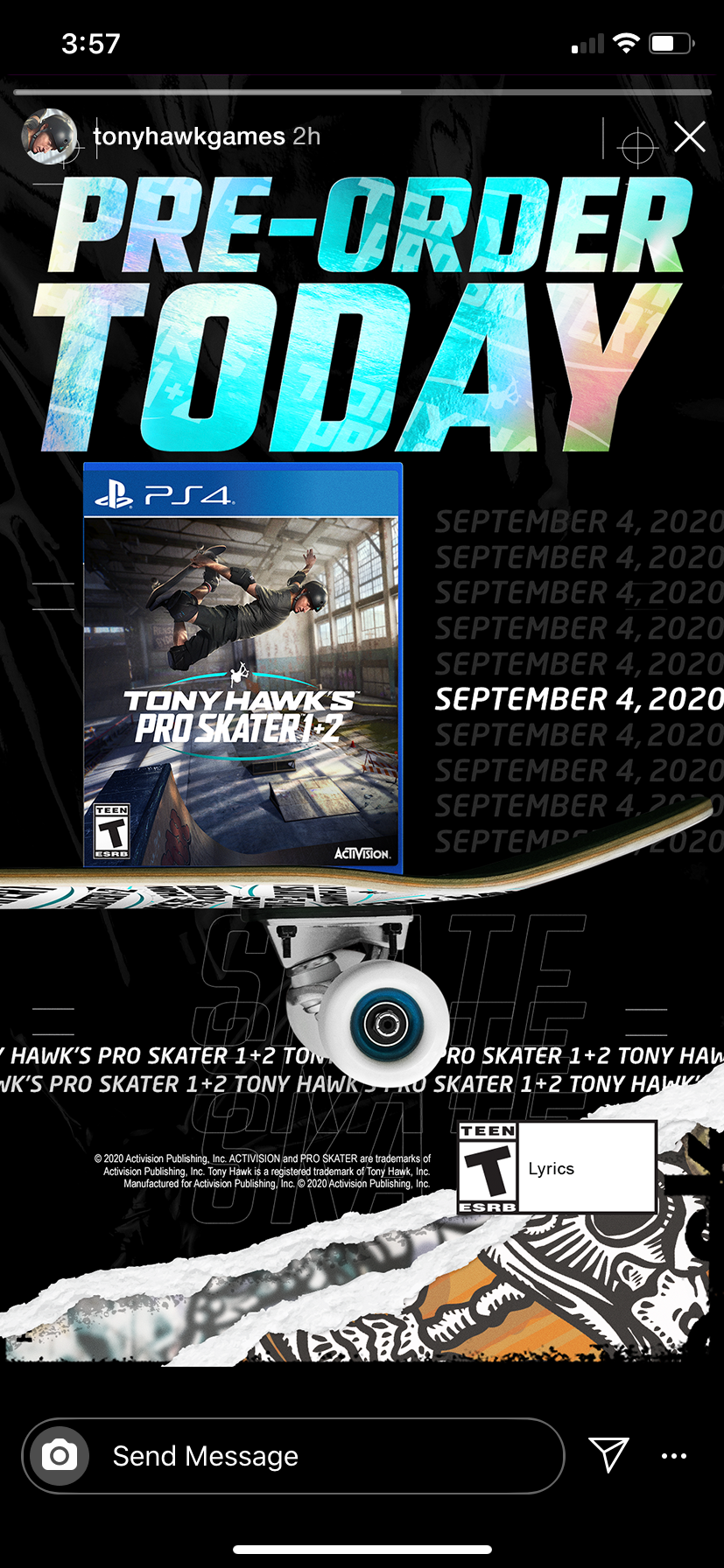 This Instagram Stories concept was based off a brief given to our team from stakeholders. Initially they requested to just show stickers on a skateboard, but we wanted to expand the concept and use the Tony Hawk stories as a way to tease the initial release of the game. Through each frame you can see we're slowly building a skate deck by adding trucks then customizing with stickers and ending with the call to action. Once the deck was built, the final call to action shows the deck fully complete, supporting a physical copy of the game. On each corner of the frame we've included a little easter egg showcasing the designer of the freebie fingerboard we were giving away as an incentive for game pre-orders.