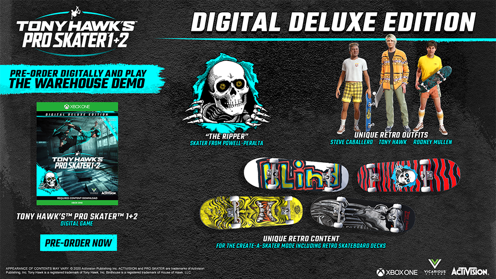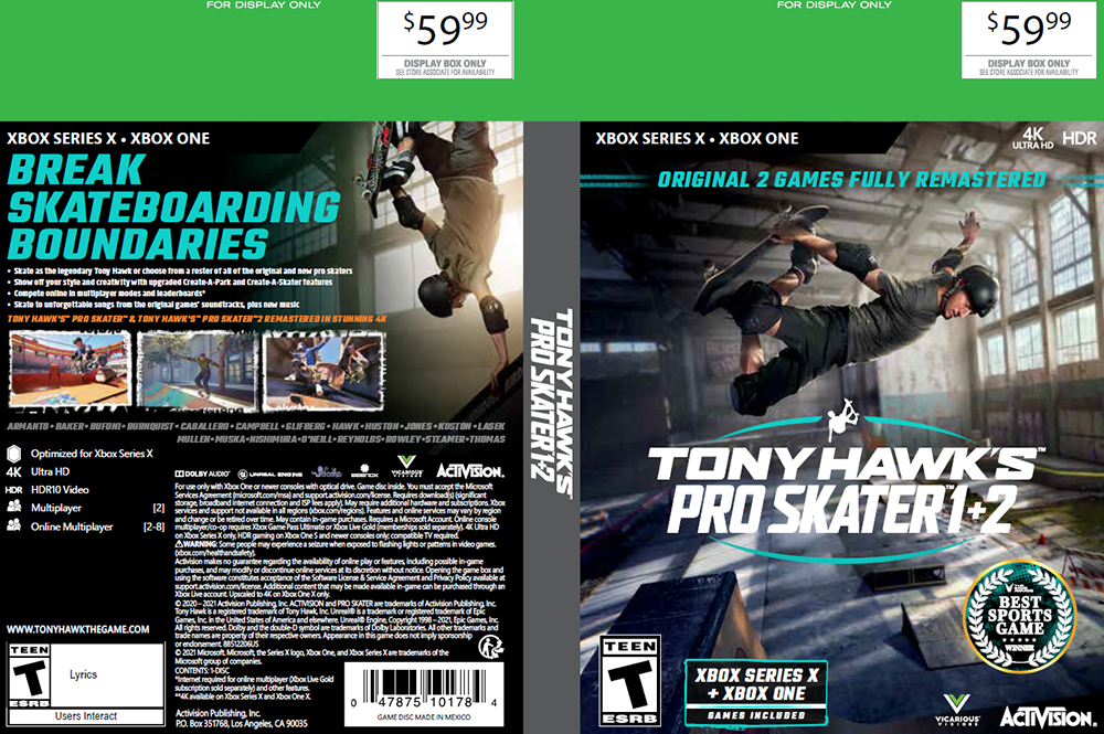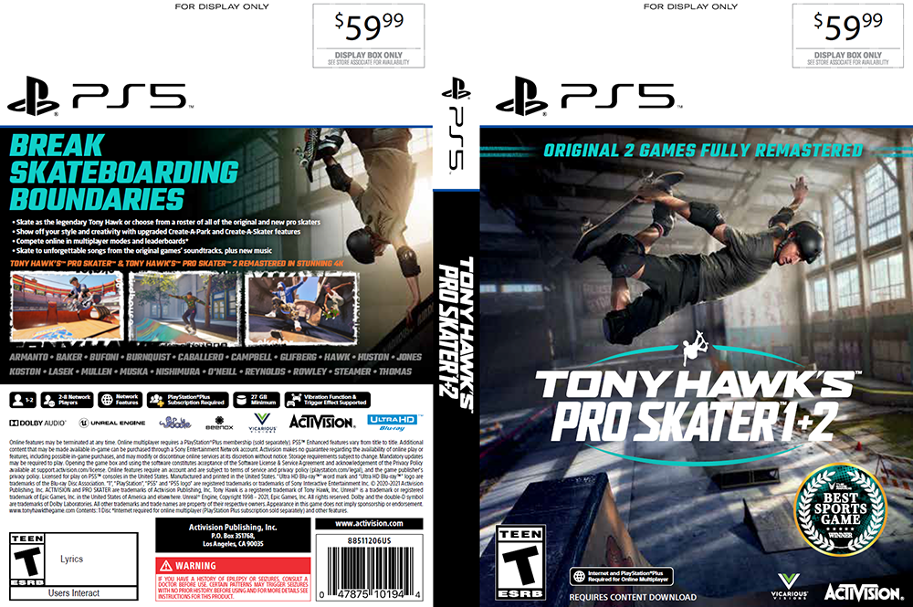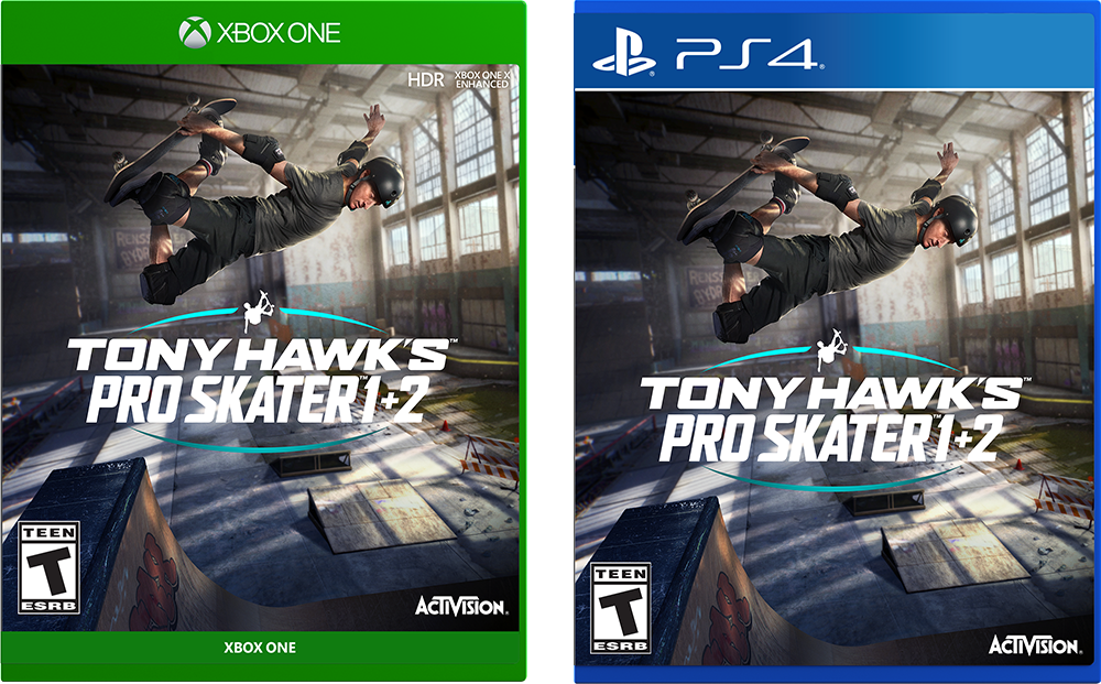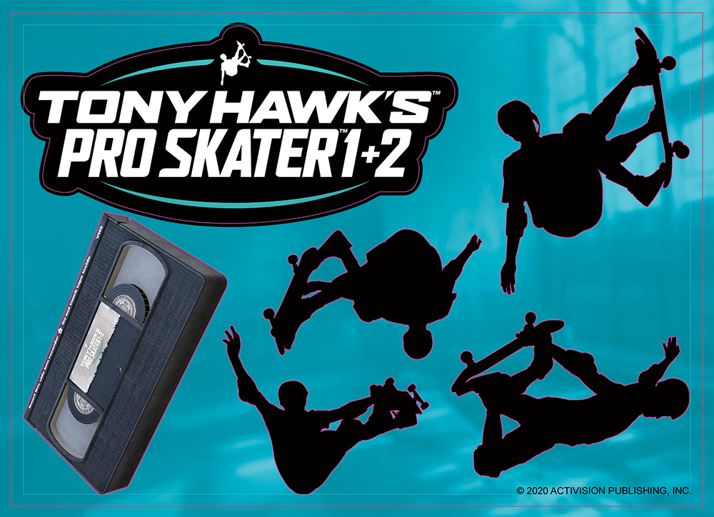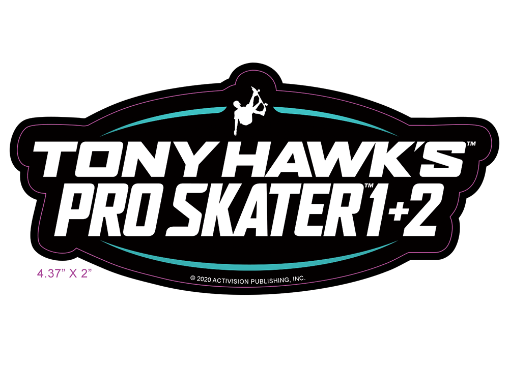 First: Official Activision Blizzard Tony Hawk's Pro Skater 1+2 promotional and game keyart used throughout the entire game's marketing campaign. Different elements of the keyart could be moved depending on the marketing asset's needs.